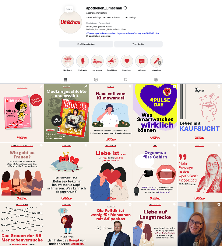 Etwa jeder vierte Bundesbürger im Erwachsenenalter liest monatlich die Apotheken Umschau. Sie bietet ihren Leserinnen und Lesern alle 14 Tage fundierte, nützliche und leicht verständliche Informationen zu allen wichtigen medizinischen Fragen. Lebensqualität und Lebensfreude stehen dabei immer im Vordergrund.