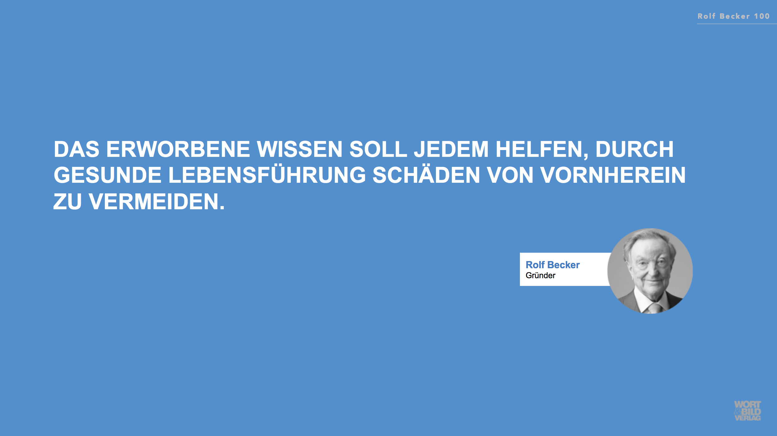 „Rolf Becker war ein großer Visionär und beeindruckender Unternehmer. Er hat die Basis dafür gelegt, was wir heute weiterentwickeln dürfen: Gesundheitsinformationen auf höchstem Niveau für ein Millionenpublikum, sowohl als Magazin als auch im Digitalen“, so Andreas Arntzen, Vorsitzender der Geschäftsführung des Wort & Bild Verlags. „Wie wichtig seriöse, punktgenaue und aktuelle Berichterstattung im Gesundheitsbereich ist, zeigt die aktuelle Situation in der Corona-Pandemie. Wir gedenken Rolf Beckers anlässlich seines 100. Geburtstages und sind dankbar, seine Vision weiterführen zu dürfen“, sagt Dr. Dennis Ballwieser, Geschäftsführer des Wort & Bild Verlags.